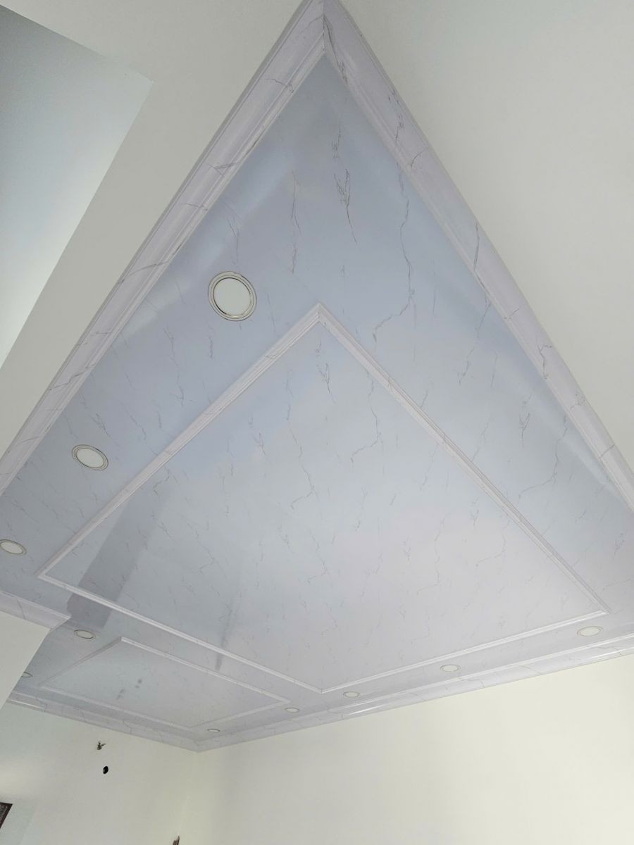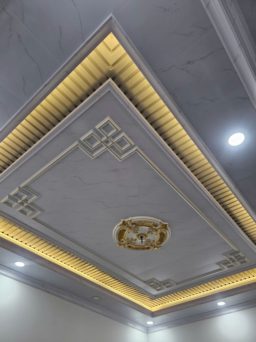 TRẦN NHỰA NANO PHẲNG GIẢ 2 CẤP THI CÔNG TẠI BÌNH DƯƠNG BÊN EM CẮT TẤM THEO CHIỀU DÀI CỦA NHÀ LÀ 5M KHÔNG NỐI TẤM